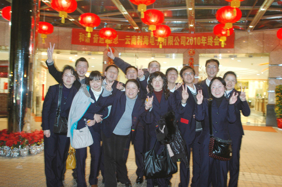 2011年1月30日下午,以“和諧.奮進(jìn).感恩”為主題的公司2010年終會(huì)議在昆明君樂(lè)酒店二樓多功能廳隆重召開(kāi)。來(lái)自寧波慈溪工廠制造中心代表、各部門經(jīng)理和員工們共計(jì)40余人參加,隨著音樂(lè)緩緩響起,大屏上播放著“2010年公司大記事和員工、團(tuán)隊(duì)工作風(fēng)采短片”——把大家?guī)нM(jìn)“和諧.奮進(jìn).感恩”的氛圍中。