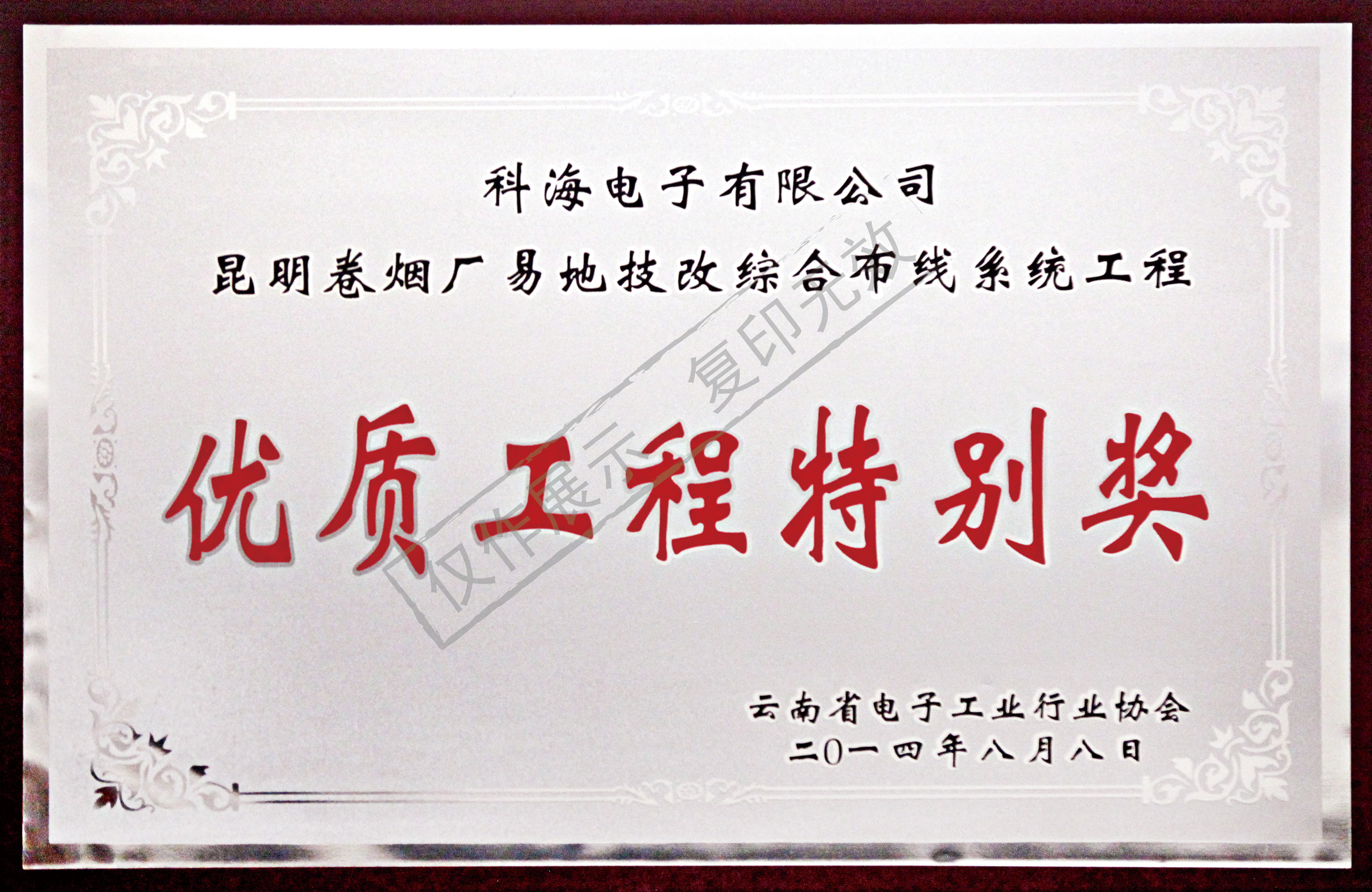 昆明煙廠易地技改優(yōu)質(zhì)工程特別獎(jiǎng)